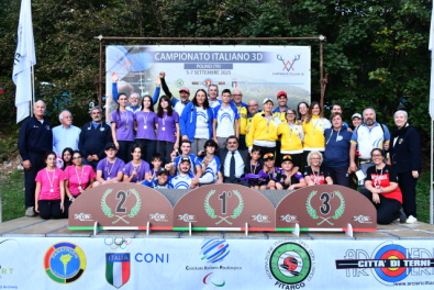 La seconda giornata di gare dei Campionati Italiani 3D di Polino (Tr) termina con l'assegnazione dei titoli italiani a squadre e la definizione dei finalisti individuali che domani, domenica 7 settembre, si sfideranno per i titoli italiani under 20 e over 20 delle divisioni arco nudo, compound, arco tradizionale e longbow.